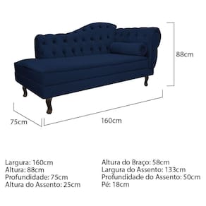 Kit Diva Recamier Diana 160cm Lado Esquerdo E 01 Poltrona Classic Suede - Doce Sonho Móveis Cor Azul Marinho