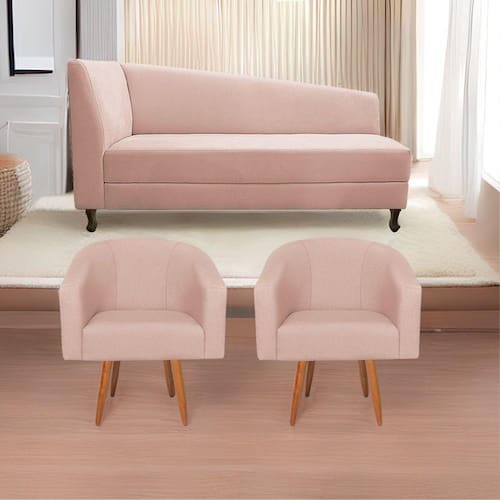 Gostaria de um móvel que trouxesse mais elegância e sofisticação para o seu lar? O Kit Recamier Heitor 140cm Lado Direito e 02 Poltronas Luiza é sua melhor opção! Com característica moderna e com acabamento de qualidade, este produto atenderá suas expectativas! Não perca essa oportunidade e adquira já a sua!