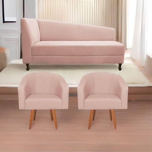 Kit Diva Recamier Heitor 140cm Lado Esquerdo E 02 Poltronas Luiza Suede - Doce Sonho Móveis Cor Rosê