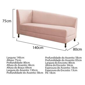 Especificações Técnicas do Kit Recamier Heitor 140cm Lado Esquerdo e 02 Poltronas Luiza: