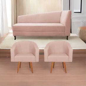 Kit Diva Recamier Heitor 160cm Lado Esquerdo E 02 Poltronas Luiza Suede - Doce Sonho Móveis Cor Rosê