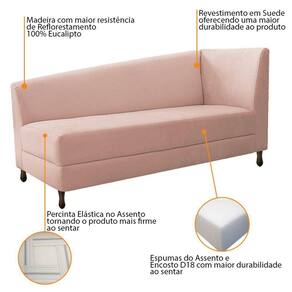 Kit Diva Recamier Heitor 160Cm Lado Esquerdo E 02 Poltronas Luiza Suede - Doce Sonho Móveis Rosê