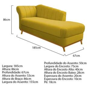 Kit Diva Recamier Vanessa 185cm Lado Direito E 01 Poltrona Laura Suede Cor Amarelo