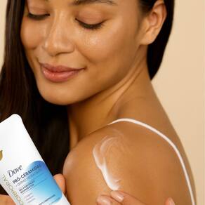 Em seguida, utilize o Sérum Deo Hidratante Dove, espalhando uniformemente por todo o corpo para selar a hidratação.