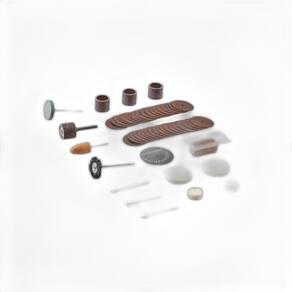 Os itens que acompanham esse kit são: - 01 Cortador de alta velocidade 194 - 01 Pedra de amolar de óxido de alumínio 952 - 01 Rebolo de carboneto de silício 85422 - 01 Escova de cerdas de náilon 403 - 02 Rodas de polimento de feltro 414 1/4 pol. - 01 Composto de polimento 421 - 02 Rodas de polimento de feltro 429 1/2 pol. - 36 Discos de corte 409 - 01 Disco de corte reforçado 426 - 01 Tambor de lixa 407 - 01 Cinta de lixa 408 60 Grit - 01 Cinta de lixa 432 Grão 120 - 01 Mandril 401 - 01 Mandril 402