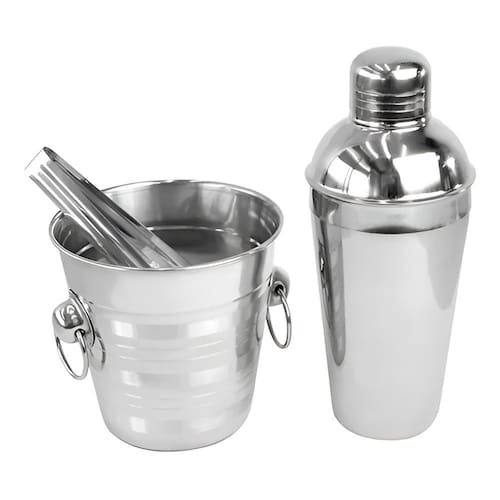 Kit Drinks Bar 3 Peças Coqueteleira Balde Pegador Inox