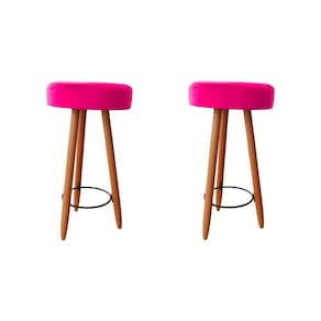 Kit Duas Banqueta Alta Para área Gourmet Balcão Pés Palito Courino Rosa Pink Eli Móveis E Decoração