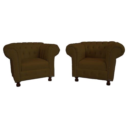 KIT DUAS Poltronas Chesterfield Luiz XV Capitone SUEDE MARROM