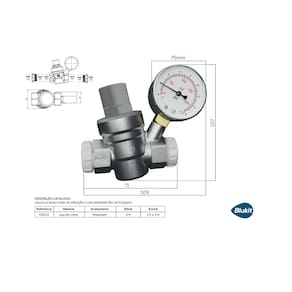 Kit Duchão + Válvula Redutora de Pressão 3/4" Com Manômetro Integrado Blukit -