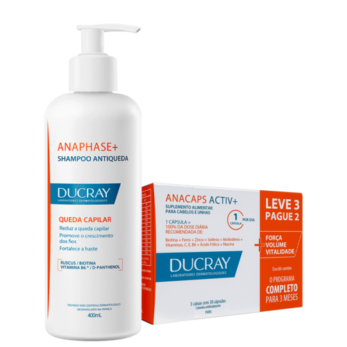 Kit DUCRAY Anacaps + Anaphase Super traz os melhores produtos que atuam diretamente na causa da queda de cabelo, com fórmulas exclusivas que incluem a combinação de ativos consagrados no fortalecimento dos fios.