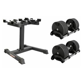 Graças à tecnologia de mudança rápida, você altera a carga com apenas uma das mãos: basta girar a alça enquanto o haltere está na base para selecionar o peso desejado. O suporte (Rack) incluso não apenas organiza o ambiente, mas coloca os pesos na altura ideal para uma pegada segura, evitando esforços desnecessários na coluna ao levantar a carga do chão. É a união perfeita entre tecnologia, segurança e design.