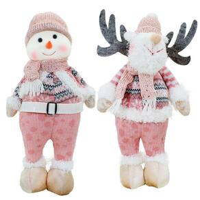 Kit Dupla Boneco Natal Rena Boneca De Neve Rosa Natalina Tecido 44,5cm