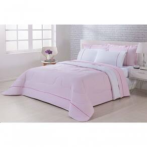 Kit Edredom 100% Algodão Percal 150 Fios Dupla Face Solteiro Gran Moratta + Jogo De Cama 5 Peças - Rosa/branco