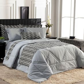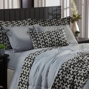 A nova coleção Áquila traz toda a sofisticação, luxo e aconchego. Por possuírem dupla face, apresentam superfície que valoriza ainda mais as cores, podendo utilizar os dois lados do Edredom! Confeccionado em pantográfica computadorizada com lindos desenhos geométricos no edredom! Composto em tecido Percal 200 Fios 80% algodão super macio com 200g de enchimento, agregando ainda mais para seu conforto! Acompanhando o jogo de lençol com duas fronhas com detalhes no acabamento em Lacinho super moderno e elegante, e também o lençol de cima com a vira estampada em Jacquard! Ideal para decorar, trazer conforto e tornar o quarto ainda mais convidativo e elegante! Confira!