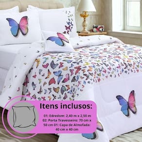 Kit Edredom Casal Queen Borboletas Dupla Face 4 Peças