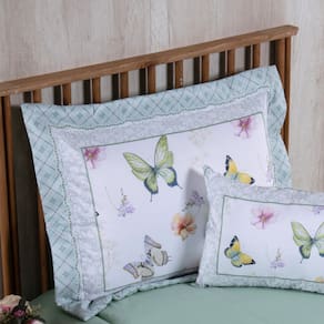QUANTIDADE DE PEÇAS E MEDIDAS APROXIMADAS (COMPRIMENTO X LARGURA): 01 Edredom Estampado Juvenil Menina: 2,50m x 1,90m; 01 Porta Travesseiro Estampado com Aba: 70cm x 50cm (medida útil); 01 Capa para Almofada Estampada: 55cm x 35cm; 01 Refil Enchimento de Almofada: 60cm x 40cm.