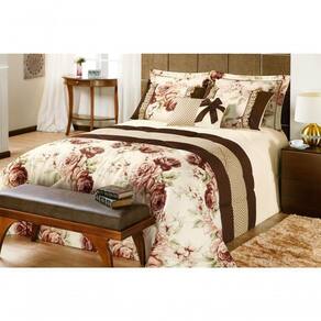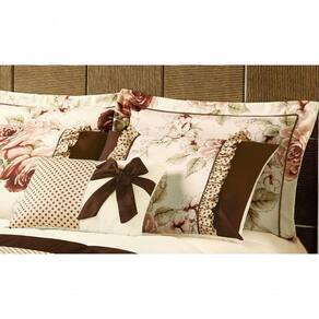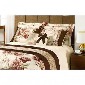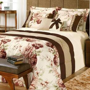 Com toda sua beleza, o Kit Vitoria possui estampa floral, contém laço na almofada e babado nos portas travesseiros, é composto por um edredom, dois porta travesseiros, duas capas de travesseiro c/ babados, uma capa de almofoda, um refil de almofada.