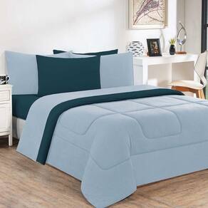 Kit Edredom + Jogo De Lençol 100% Algodão Gran Moratta 5 Peças Solteiro Azul Bebê-azul Petróleo - Única