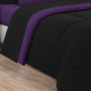 Kit Edredom + Jogo De Lençol 100% Algodão Gran Moratta 5 Peças Solteiro Preto-roxo - Única