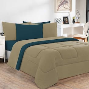 Kit Edredom + Jogo De Lençol Malha 100% Algodão Gran Moratta 6 Peças King - Avelã/azul Petróleo