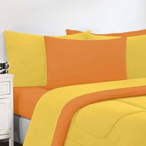 Kit Edredom + Jogo De Lençol 100% Algodão Gran Moratta 6 Peças Queen Amarelo-laranja - Única