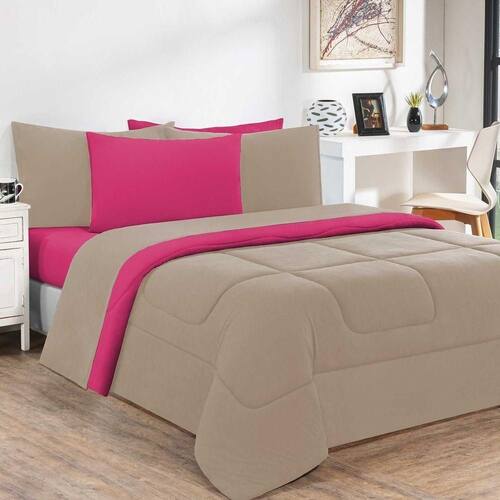 Kit Edredom + Jogo De Lençol 100% Algodão Gran Moratta 6 Peças Queen Avelã-pink - Única