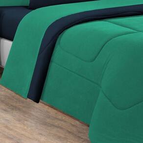 Kit Edredom + Jogo De Lençol 100% Algodão Gran Moratta 7 Peças King Verde Jade-azul Marinho - Única
