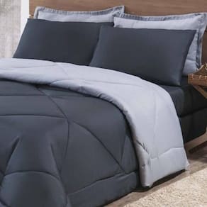 Kit Edredom + Jogo De Lençol Aconchego Look House Dupla Face Casal Queen 06 Peças - Preto/ Cinza O Kit Look House, traz para seu ambiente um conjunto de roupas de cama com todas as peças que você precisa para deixar seu ambiente aconchegante, sem contar o conforto para as noites de sono. Produto composto por:01 Edredom 2,50m x 2,20m01 Lençol de baixo c/ elástico para colchão de 1,58m x 1,98m x 0,30cm02 Porta travesseiros 70cm x 50cm02 Fronhas de 70cm x 50cm Composição tecido: 80% Algodão / 20% Poliéster