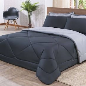 Kit Edredom + Jogo De Lençol Aconchego Look House Dupla Face Casal Queen 06 Peças - Preto/ Cinza O Kit Look House, traz para seu ambiente um conjunto de roupas de cama com todas as peças que você precisa para deixar seu ambiente aconchegante, sem contar o conforto para as noites de sono. Produto composto por:01 Edredom 2,50m x 2,20m01 Lençol de baixo c/ elástico para colchão de 1,58m x 1,98m x 0,30cm02 Porta travesseiros 70cm x 50cm02 Fronhas de 70cm x 50cm Composição tecido: 80% Algodão / 20% Poliéster