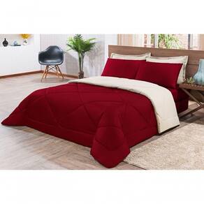 Kit Edredom + Jogo De Lençol Aconchego Look House Dupla Face Solteiro 04 Peças - Vermelho/ Palha O Kit Look House, traz para seu ambiente um conjunto de roupas de cama com todas as peças que você precisa para deixar seu ambiente aconchegante, sem contar o conforto para as noites de sono. Produto composto por:01 Edredom 2,40m x 1,60m01 Lençol de baixo c/ elástico para colchão de 1,88m x 88cm x 0,30cm01 Porta travesseiros 70cm x 50cm01 Fronhas de 70cm x 50cm Composição tecido: 80% Algodão / 20% Poliéster