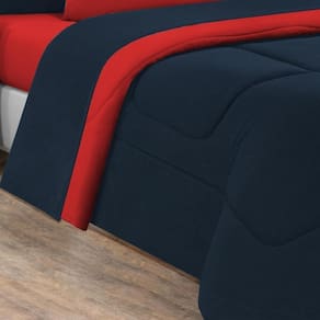 Marca: Enxovais Davy | Estampa: Não se Aplica | Medidas: 01 Edredom Solteiro Dupla Face Liso 1,60m x 2,40m01 Porta Travesseiro 70cm x 50cm01 Lençol de Cima 1,60m x 2,40m 01 Lençol de Baixo para Colchão 0,88m x 1,88m x 0,30m (Elástico em toda a volta)01 Fronha 70cm x 50cm | Número de Peças: 05 Peças | Material: Agodão | Cor Predominante: Azul Marinho/Vermelho | Cama Indicada: Solteiro