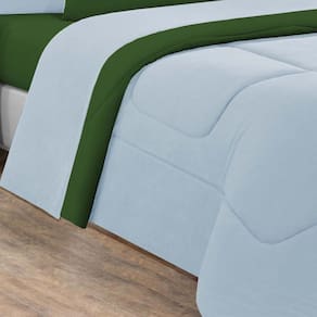Marca: Enxovais Davy | Estampa: Não se Aplica | Medidas: 01 Edredom King Dupla Face Liso 2,50m x 2,90m02 Porta Travesseiros 70cm x 50cm01 Lençol de Cima 2,50m x 2,90m 01 Lençol Casal de Baixo para colchão 1,93m x 2,03m x 0,30m (Elástico na volta toda)02 Fronhas 70cm x 50cm | Número de Peças: 07 Peças | Material: Agodão | Cor Predominante: Azul Bebê/Verde Bandeira | Cama Indicada: King