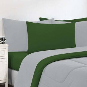 Kit Edredom + Jogo De Lençol Malha 100% Algodão Gran Moratta 5 Peças Solteiro - Cinza/verde Bandeira