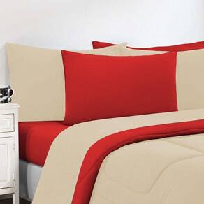 Kit Edredom + Jogo De Lençol Malha 100% Algodão Gran Moratta 5 Peças Solteiro - Palha /vermelho