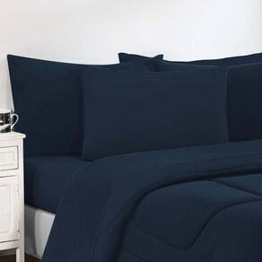 Kit Edredom + Jogo De Lençol Malha 100% Algodão Gran Moratta 6 Peças Casal - Azul Marinho/azul Marinho