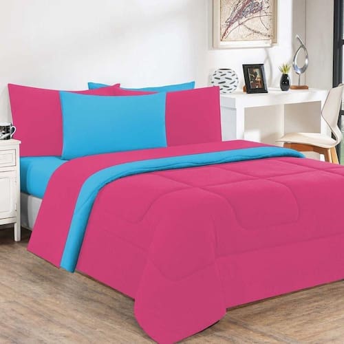 Kit Edredom + Jogo De Lençol Malha 100% Algodão Gran Moratta 6 Peças Casal - Pink -azul Turquesa - Única