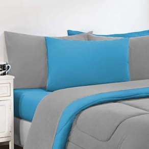 Marca: Enxovais Davy | Estampa: Não se Aplica | Medidas: 01 Edredom King Dupla Face Liso 2,50m x 2,90m02 Porta Travesseiros 70cm x 50cm01 Lençol King Size Avulso de Baixo para Colchão 1,93x2,03x0,30 (Elástico na volta toda)02 Fronhas 50cm x 70cm | Número de Peças: 06 Peças | Material: Agodão | Cor Predominante: Cinza/Azul Turquesa | Cama Indicada: King