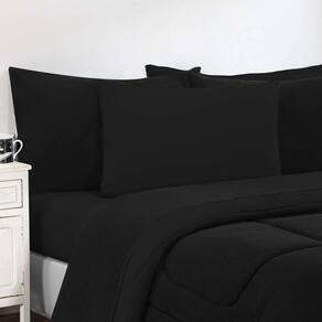 Kit Edredom + Jogo De Lençol Malha 100% Algodão Gran Moratta 6 Peças King - Preto-preto - Única