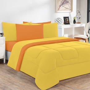 Kit Edredom + Jogo De Lençol Malha 100% Algodão Gran Moratta 6 Peças Queen - Amarelo-laranja - Única