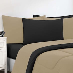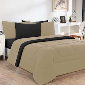Kit Edredom + Jogo De Lençol Malha 100% Algodão Gran Moratta 6 Peças Queen - Avelã/preto