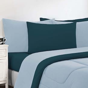Kit Edredom + Jogo De Lençol Malha 100% Algodão Gran Moratta 6 Peças Queen - Azul Bebê/azul Petróleo