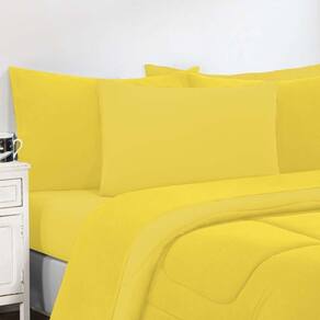 Kit Edredom + Jogo De Lençol Malha 100% Algodão Gran Moratta 7 Peças Casal - Amarelo/amarelo