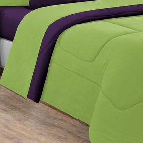 Kit Edredom + Jogo De Lençol Malha 100% Algodão Gran Moratta 7 Peças Casal - Verde Pistache-roxo - Única