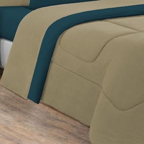 Kit Edredom + Jogo De Lençol Malha 100% Algodão Gran Moratta 7 Peças King - Avelã/azul Petróleo