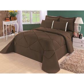 Kit Edredom + Lençol Aconchego Dupla Face Casal Queen 6 Pçs Tabaco Kit Edredom + Lençol AconchegoContém 6 Peças: 01 Edredom Dupla Face Casal Queen 2,40m x 2,20m 02 Porta Travesseiro 70cm x 50cm 02 Fronhas com Lesie 70cm x 50cm 01 Lençol De Baixo com Elástico Para colchão de 1,98m x 1,58m x 30cm altura Tecido: Microfibra Composição: 100% Poliéster
