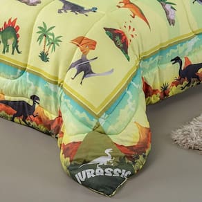 Kit Edredom + Lençol Plush Fofinho Infantil Dupla Face Dream 3 Peças Solteiro - Dinossauro
