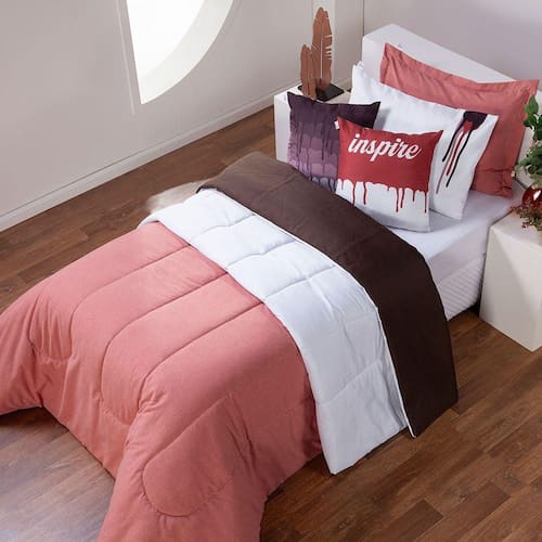 Kit Edredom Linho Colorido Solteiro Cor: Rosê Kit Edredom Colorful Dupla Face em Linho e Tecido Hipercal 400 Fio O Kit Edredom Colorful é ideal para quem busca unir decoração e conforto em um só item. Ele não só embeleza sua cama durante o dia, mas também proporciona um sono aconchegante à noite. O edredom apresenta um design dupla face: uma face combina linho com tecido Hipercal 400 fios em cores contrastantes, enquanto a outra face é exclusivamente em tecido Hipercal 400 fios. Conta com manta interna presa em toda a lateral para evitar embolamento no dia a dia ou durante a lavagem. A fronha e a capa de almofada estampadas adicionam um charme especial, enquanto o porta-travesseiro em linho com debrum harmoniza com o tom marcante do edredom. O Kit Edredom Colorful traz um toque suave e moderno, transformando a decoração da sua cama e garantindo conforto excepcional para o seu descanso. Conteúdo da Embalagem e Medidas Aproximadas: 01 Edredom Solteiro Dupla Face 2,40 x 1,80 m 02 Capas de Almofada 45 x 45 cm 01 Fronha 70 x 50 cm 01 Porta Travesseiro 70 x 50 cm medida útil Composição: Tecido: 100% Poliéster Atenção: Por favor, note que a tonalidade das cores pode variar de acordo com as configurações de cada monitor, bem como devido a possíveis diferenças entre lotes de tecido. Marca: Não Informado