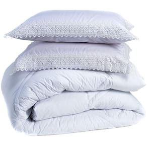 Kit Edredom Liso Florença Guipir Dupla Face Queen 03 Peças - Percal 200 Fios Cor Branco