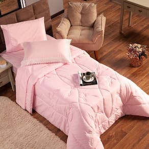Kit Edredom Liso Solteiro 02pçs Percal 200 Fios Rosa - Única