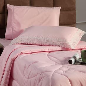 Kit Edredom Liso Florença Guipir Dupla Face Solteiro 02 Peças - Percal 200 Fios Cor Rosa